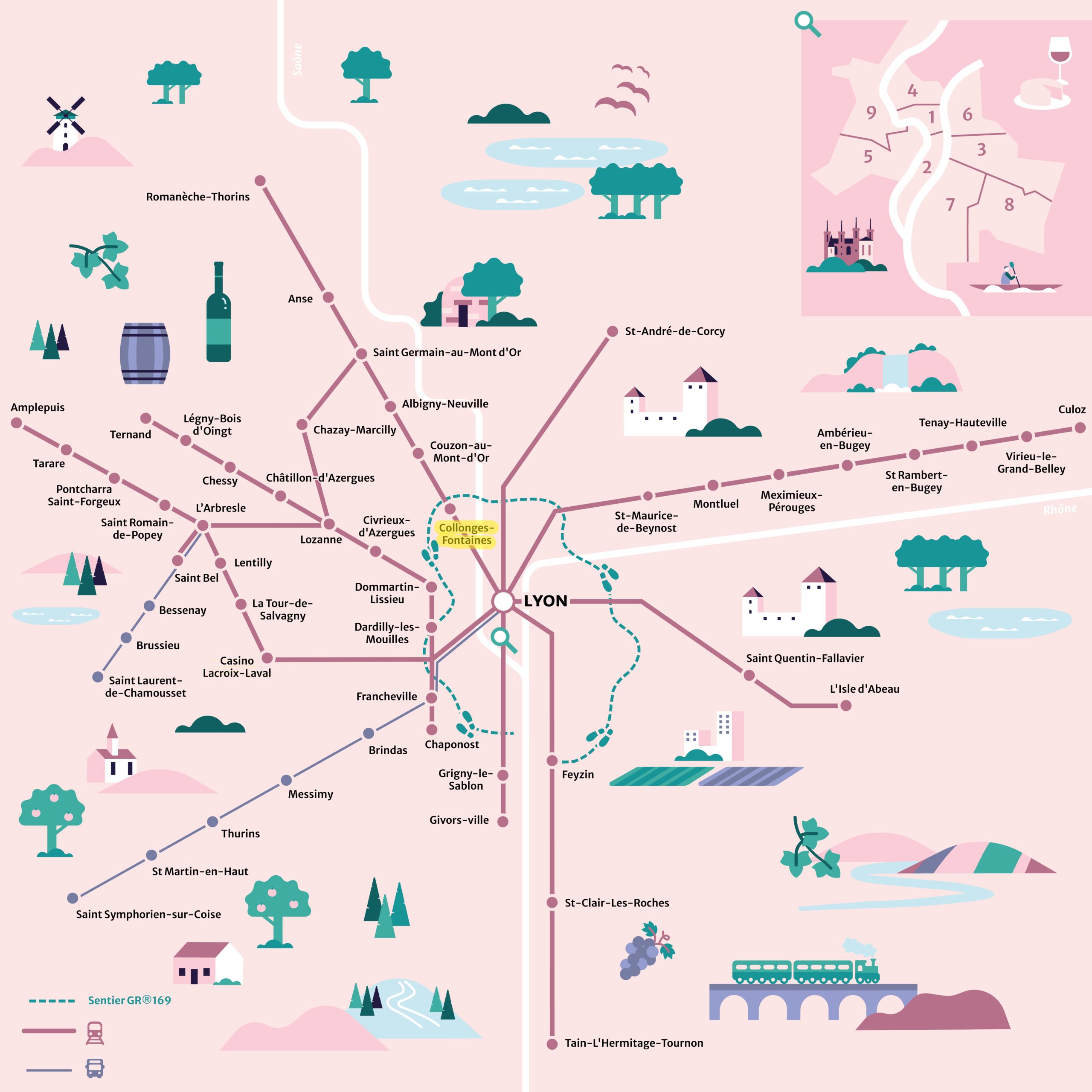 10h00 : arrivée à St Cyr-au-Mont-d’Or, départ en randonnée sur le Chemin du Grapillon, puis arrivée à l’esplanade de l’Ermitage et son magnifique panorama sur la vallée du Rhône et les Monts du Lyonnais…
